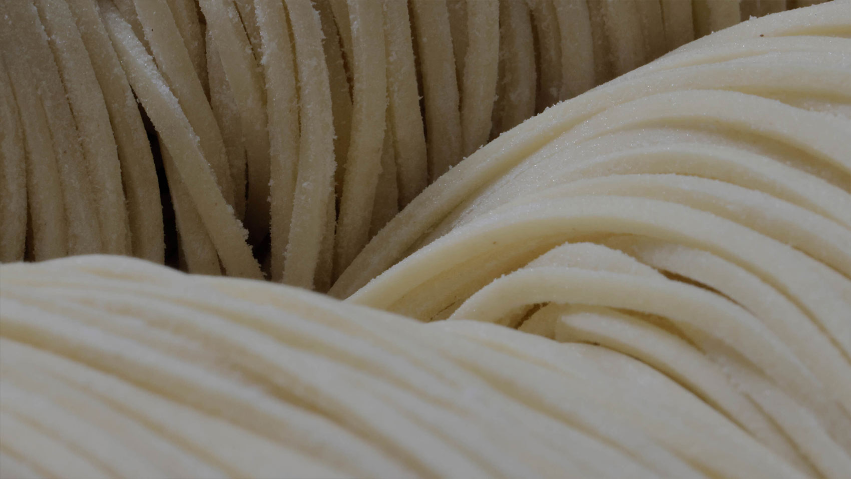 福岡・博多発のラーメン、つけ麺専門の製麺所として、日本のラーメン文化の成熟や多様化するニーズに応えるべく、創造的かつ精力的に麺づくりに向き合っています。近年ますます求められる多様な麺に対し、製麺所として何ができるかを改めて見つめ直し、お客様に寄り添う“自家製麺工場”のような存在であることを目指しています。