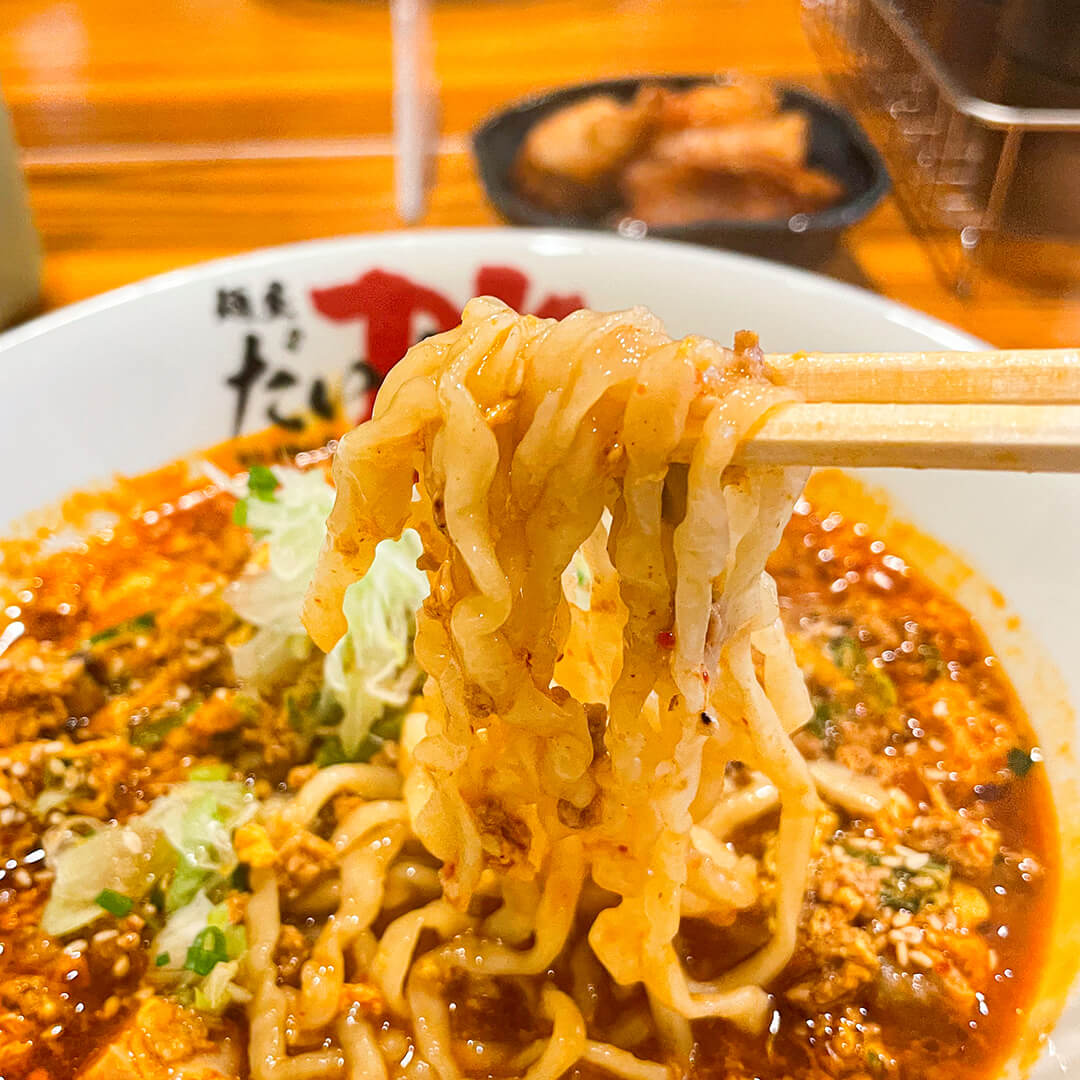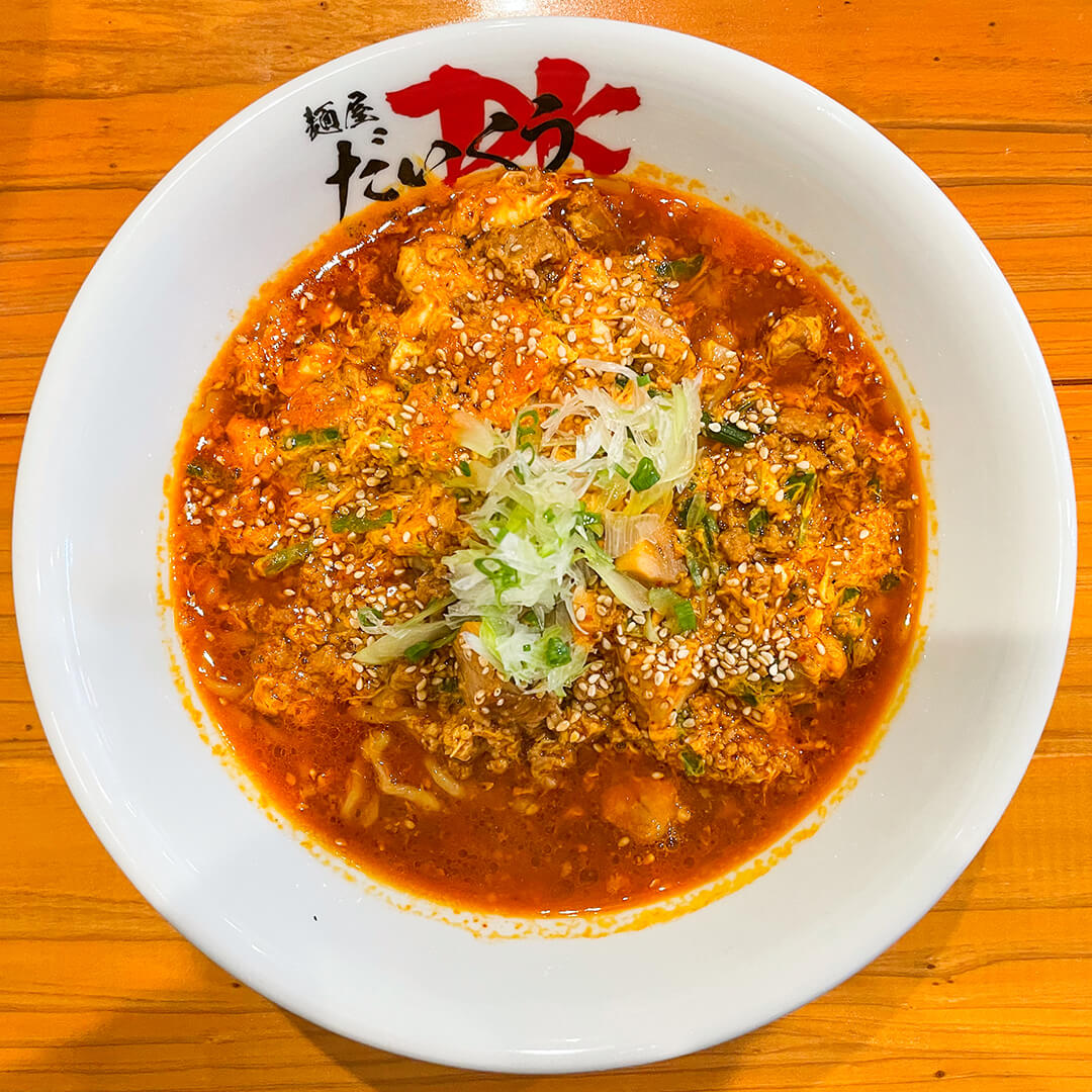 煮干しスープに旨味と辛味が加わった、大人の味付けの「大人の担々湯麺」