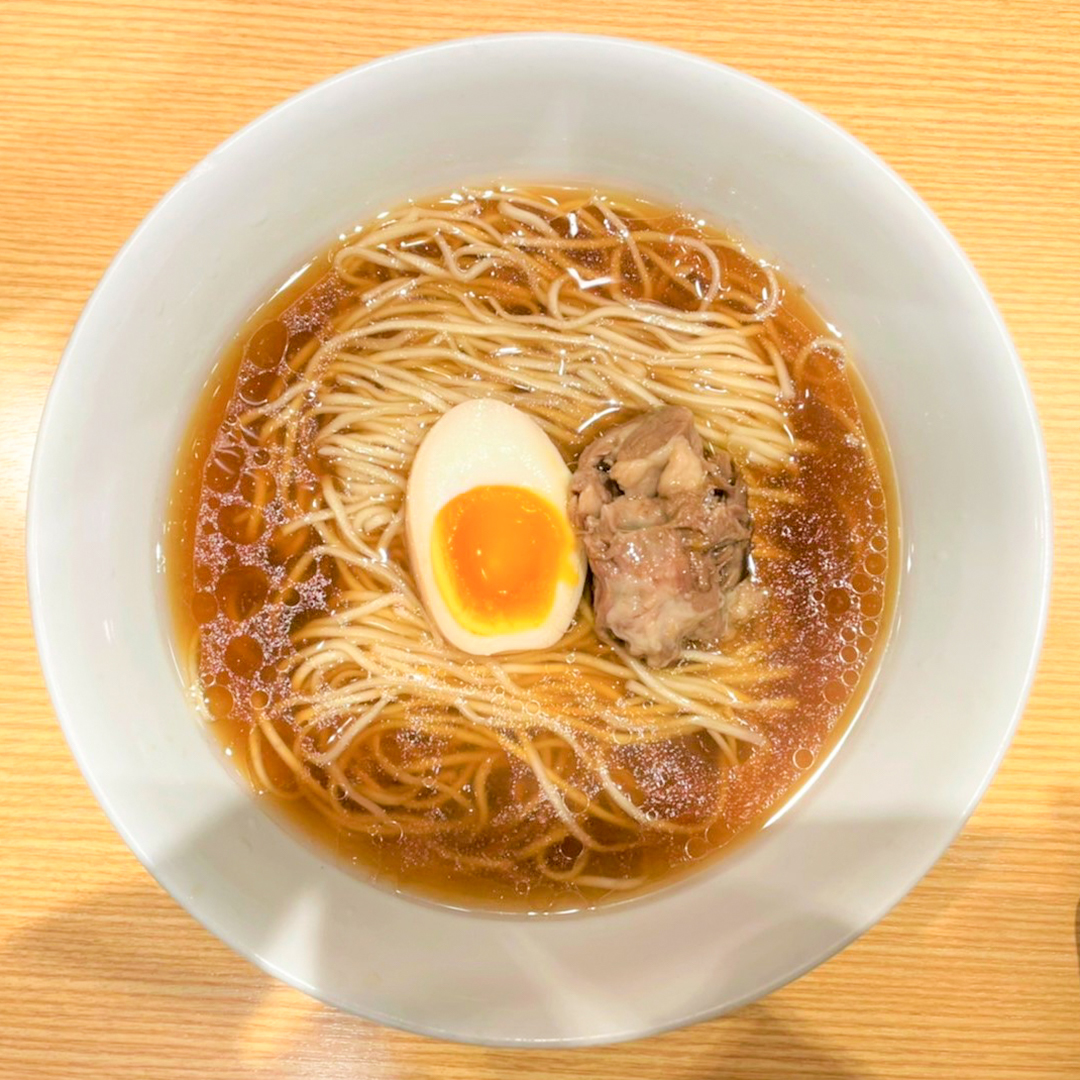 甘みと深みのある醤油ベースのスープに、ツルっとしてコシのある細平打ち麺、ホロホロの牛テール、半熟卵、別皿で青ネギとかぼすが付いてきます💖