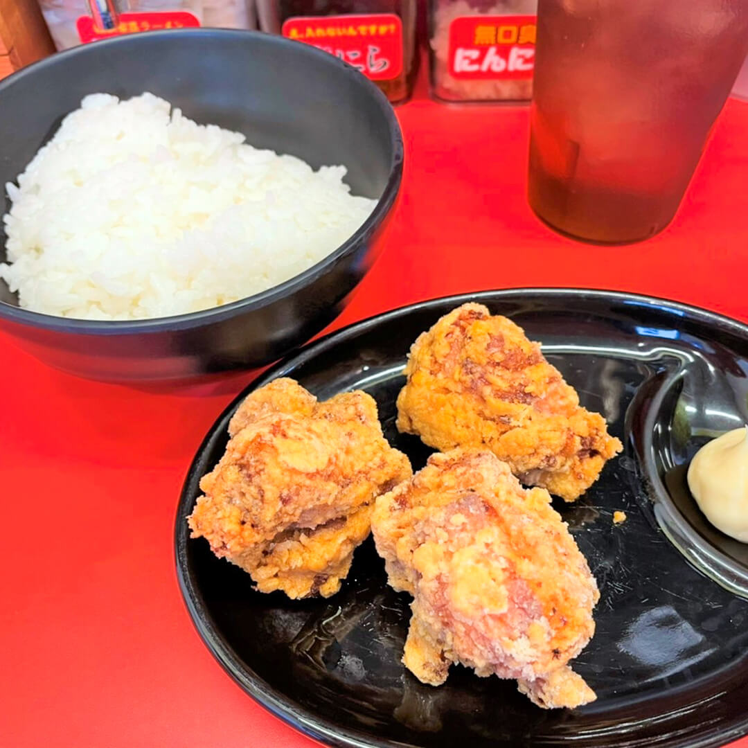 もちろん狙いは「ラーメンライス」と、単品唐揚げ(3個)も外せないのでこちらも注文✨