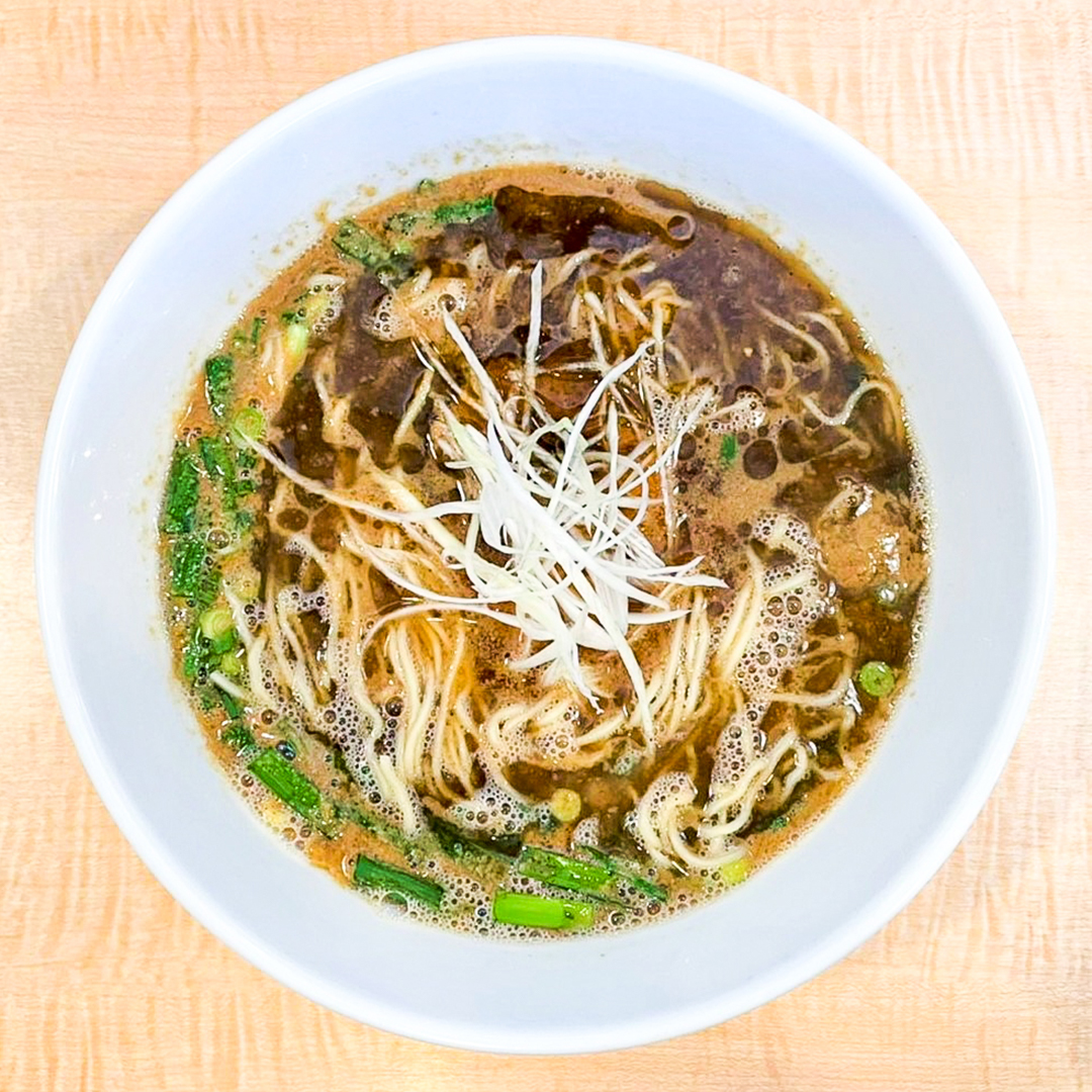 クリーミーなベースのスープに胡麻とピリッとしたラー油が効いており細麺との絡みも良く箸が進みます✨