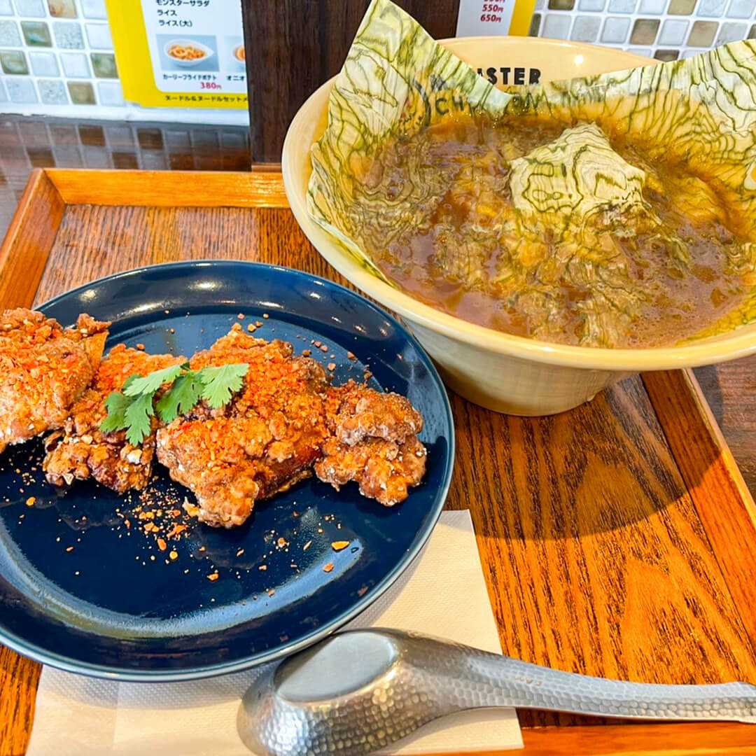 MONSTER CHICKENさんは、3種類のチキン「オリジナル」「ネギ塩」「ガーリック醤油」と、「鶏だし旨塩ヌードル」「魚介しょうゆヌードル」2種類の麺料理をメインにご提供されています。