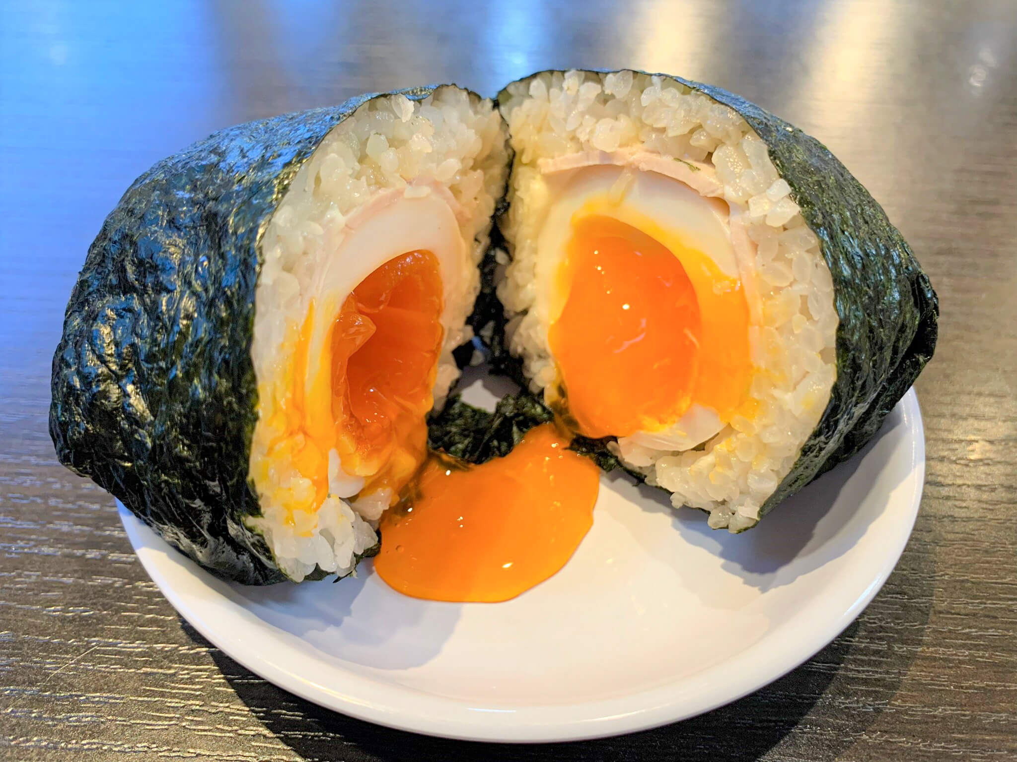 気になる「爆弾おにぎり」は、中に「半熟味付玉子」が丸々1個はいっておりボリューム満点❗️