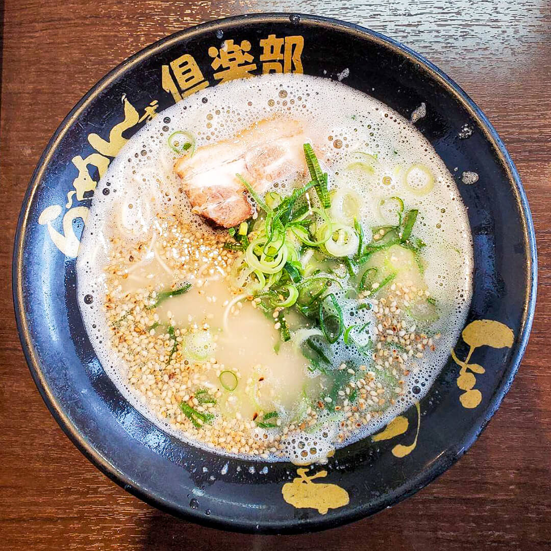 定番のラーメン定食は「ラーメン」「ごはん」「餃子」「サラダ」がついて690円とリーズナブルなお値段! 癖がなく食べやすいしっかりした味の豚骨ラーメンは柔らかく食べやすい厚切りのチャーシューが入っていて、ゴマと青ネギのシンプルなトッピングですが、バランスが良く美味しいです🥰