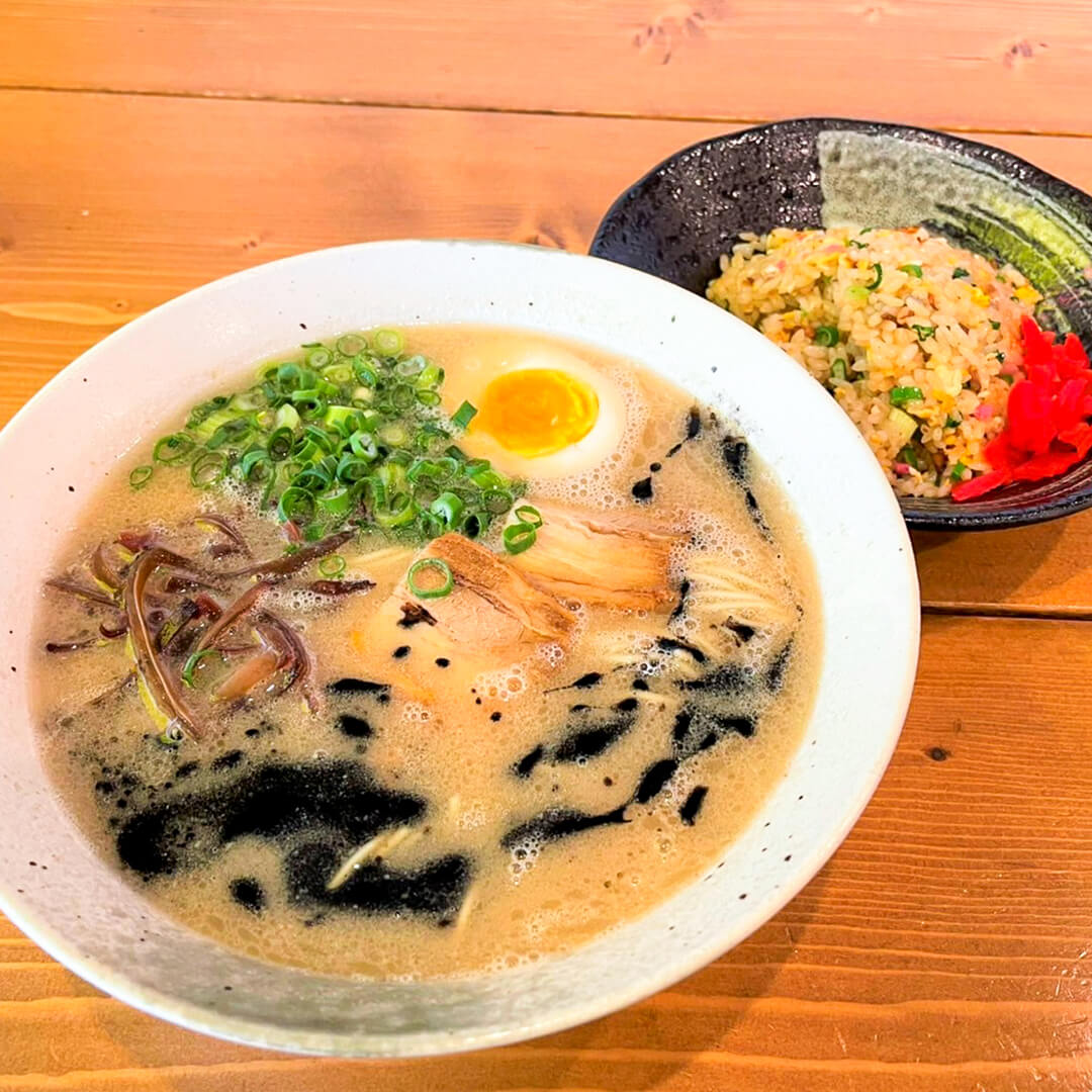 看板商品の「濃厚豚骨ラーメン」は相変わらずの美味しさで、豚骨の良い香りが食欲をかきたてます。この日は「豚骨黒ラーメン」 の「Aセット(半チャーハン付)」をいただきました✨