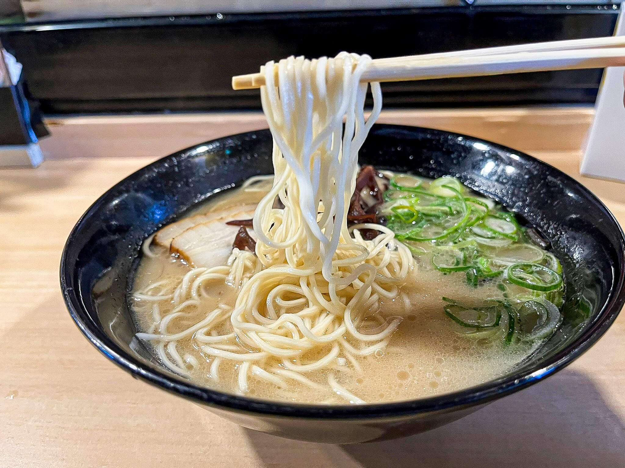 豚骨ラーメンは臭みのない上品な仕上がりの食べやすいラーメンで、細平打ち麺のパツンとした歯ごたえのある低加水麺が相性バッチリです🙌