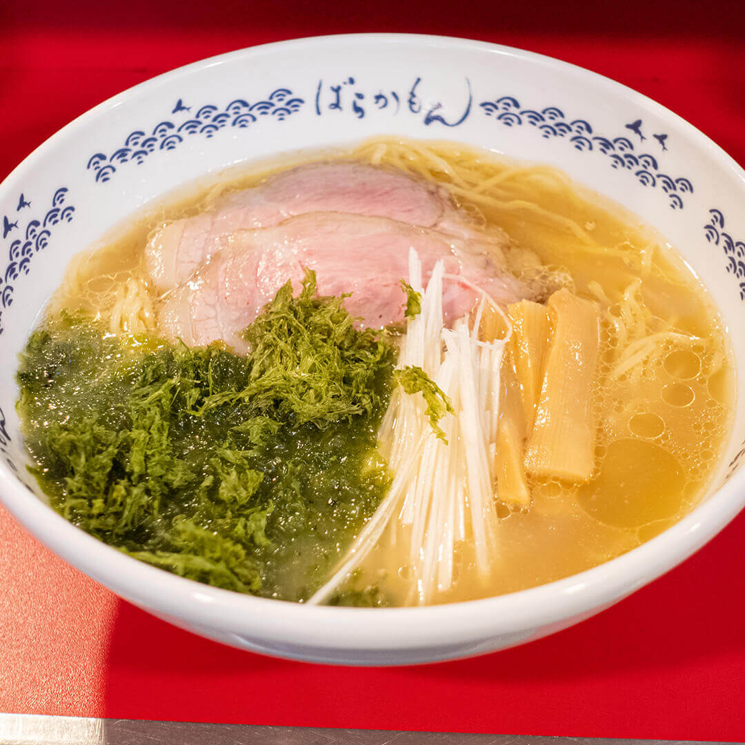 長崎県産の焼きアゴを使用した「アゴだし豚骨ラーメン」は、豚骨特有の臭みの無いあっさりとしたスープで、豚骨とアゴの相性はバッチリ❗️ トッピングにはあおさを使用しており、五島市出身の店主ならではの一杯となっています✨