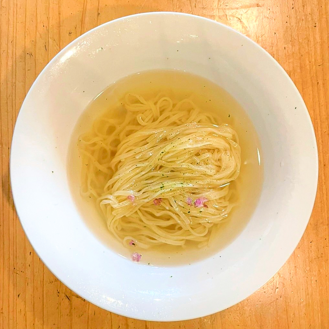 丼までキンキンに冷やしてあるスープはとにかく冷たい❗️ 動物系を一切使用しないスープは澄んでいて、可愛らしい花穂が添えられておりとても綺麗です✨