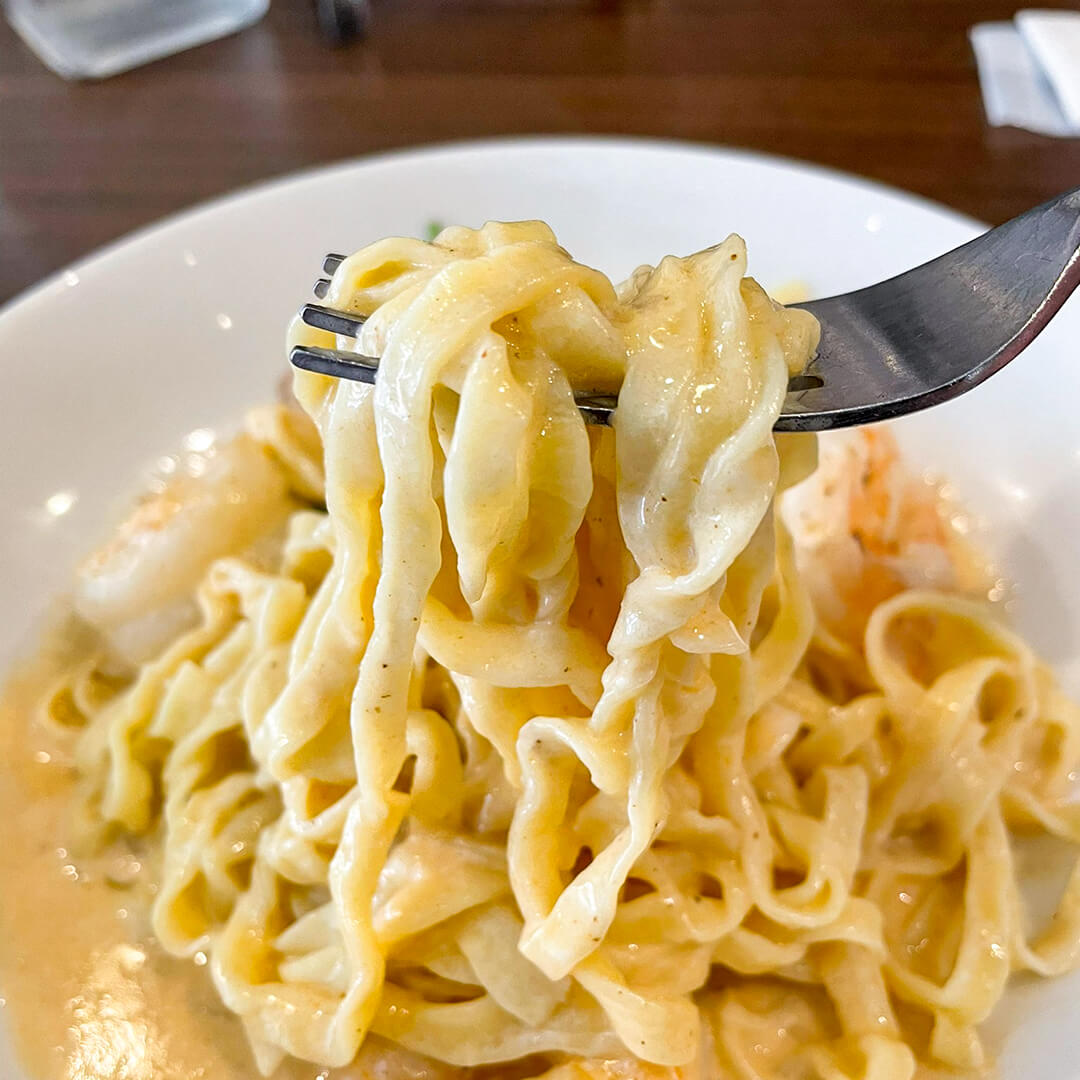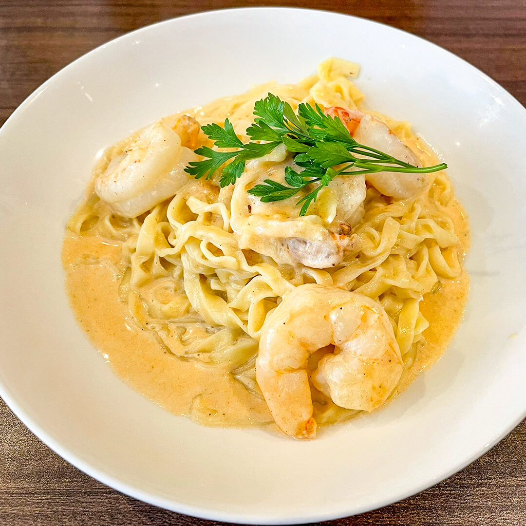パスタは週替りメニューになっており、この日のクリームパスタは「エビのアメリカンクリーム」がご提供されていました。