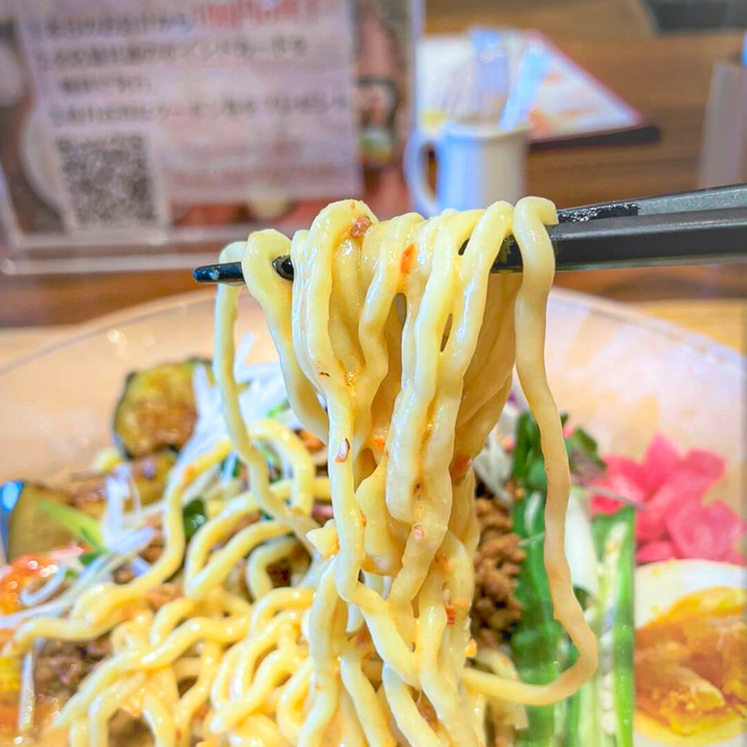 冷たい玉子ちぢれ麺によ~~く絡ませていただくととっても美味しいです😆