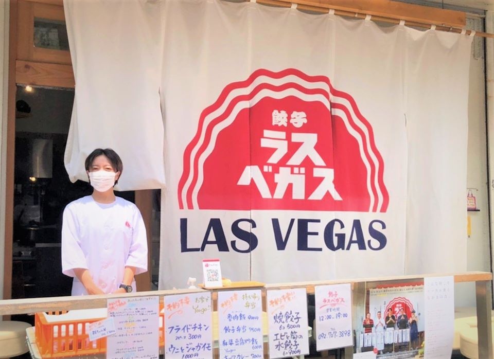 中央区大名にある「餃子のラスベガス」さんは、日替わりで変わるおっきな暖簾で、入る前から楽しめる美味しい餃子のお店です☺
