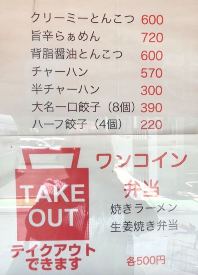 ラーメン類のテイクアウトもされていますので、ご自宅やオフィスでもぜひ濃厚豚骨ラーメンをお楽しみください☺