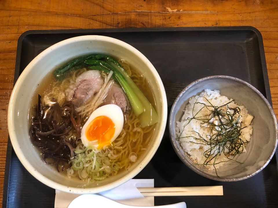 セットには、鯛の身を丁寧にほぐし、ご飯の上にのせたものが付いてきますので、食べ終わったら、ラーメンのスープをかけていただきます☺