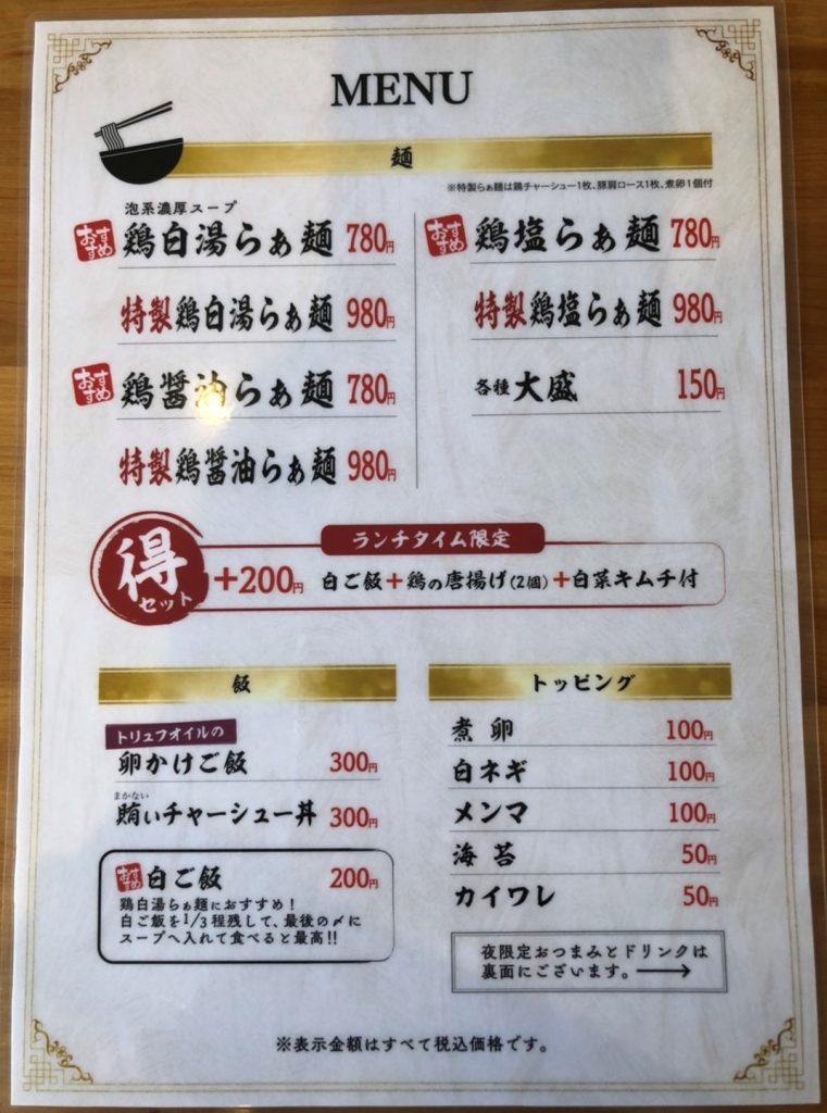 鶏白湯らぁ麺、鶏醤油らぁ麺、鶏塩らぁ麺のお店『らぁ麺鸛(こうのとり)』さん、