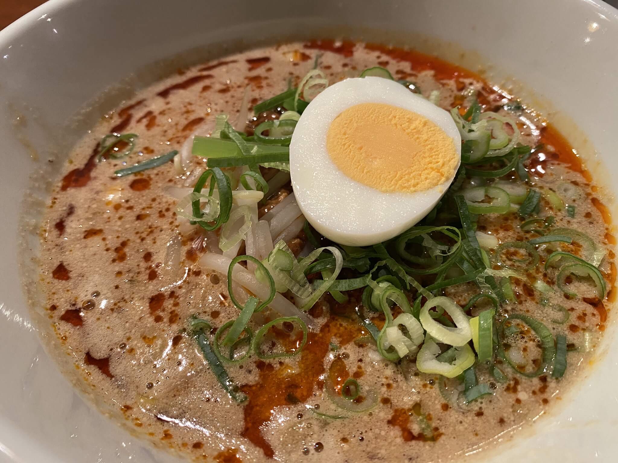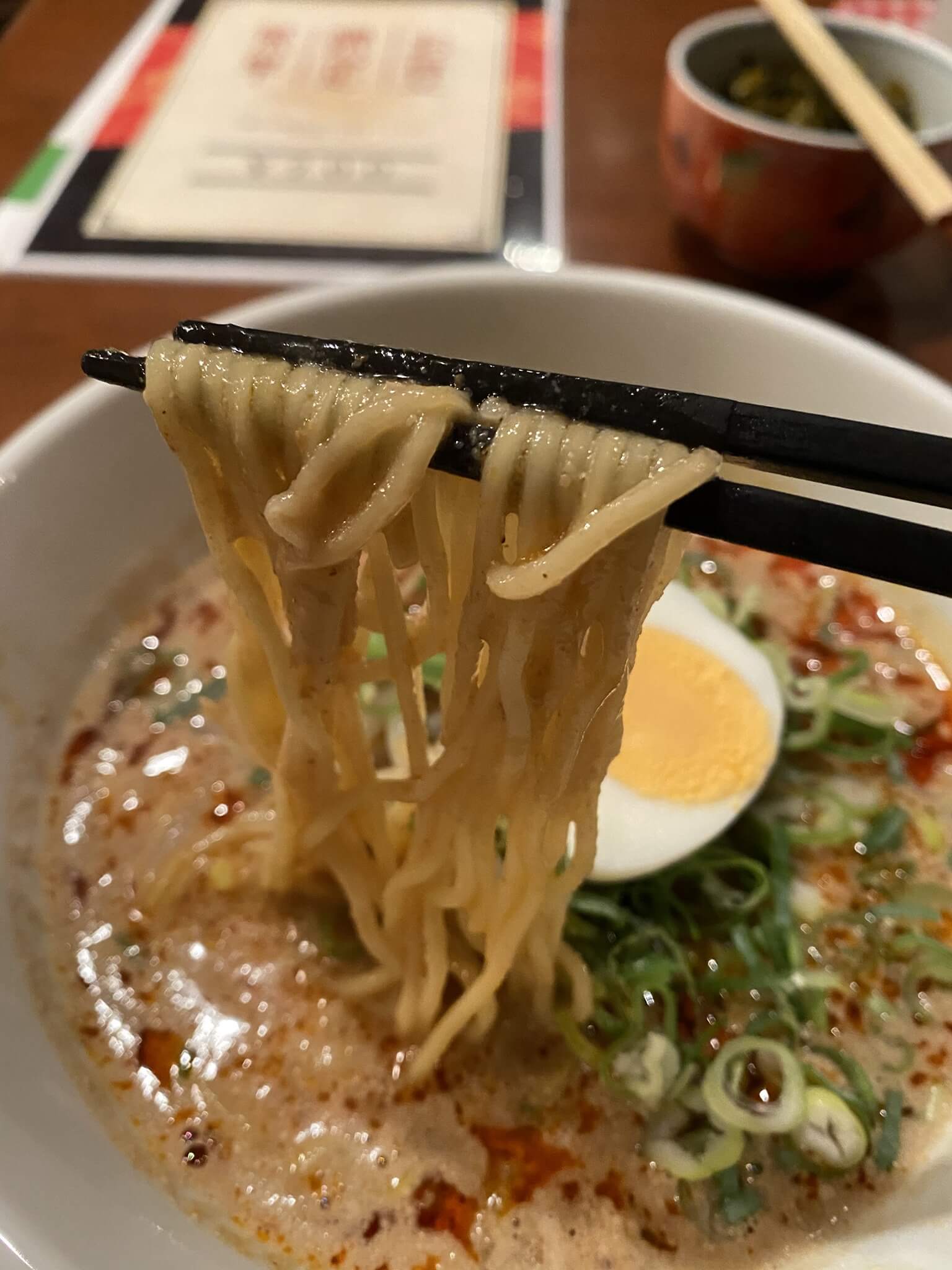 ストレートの卵麺が濃厚なスープにたっぷり絡みます