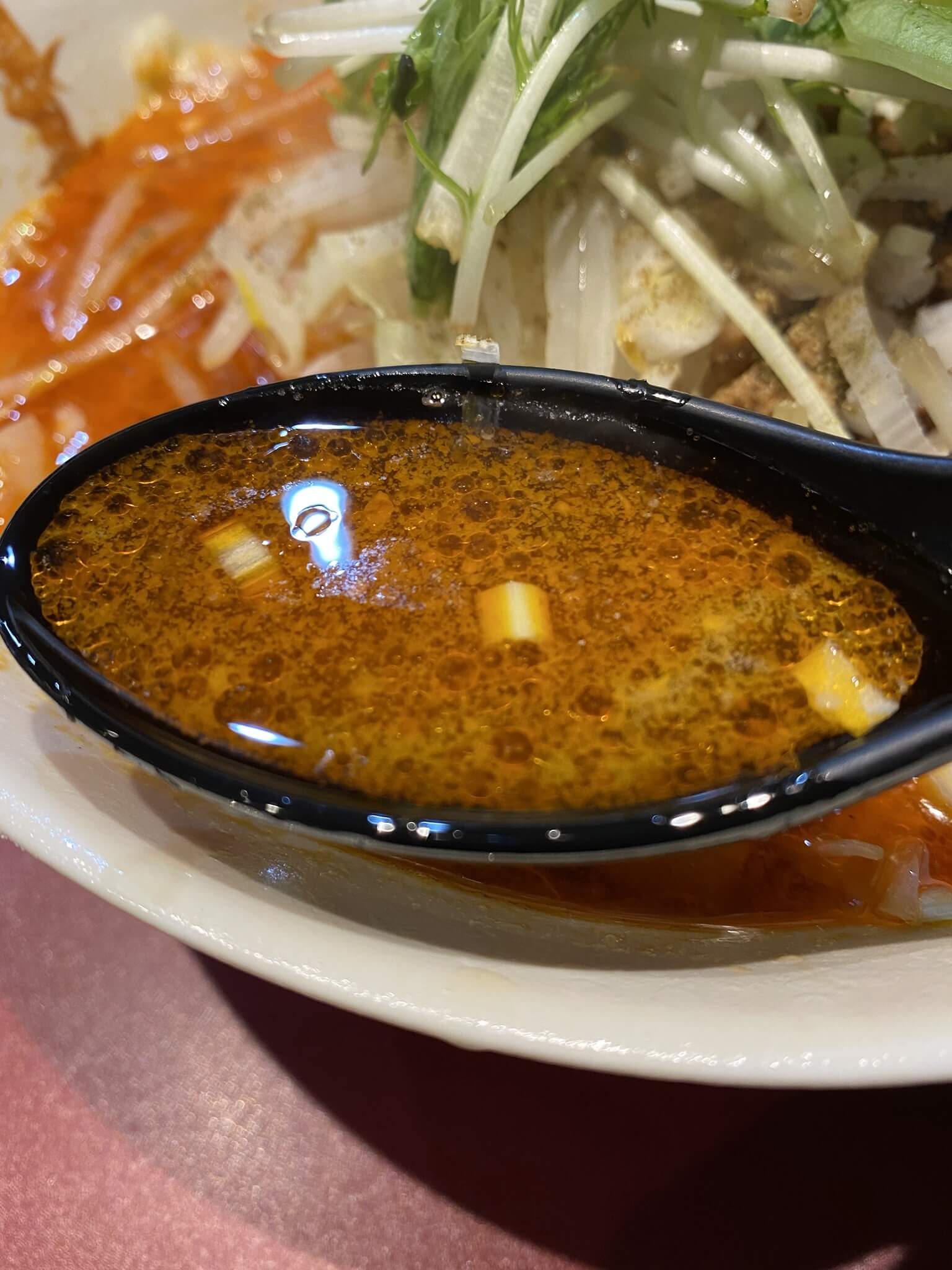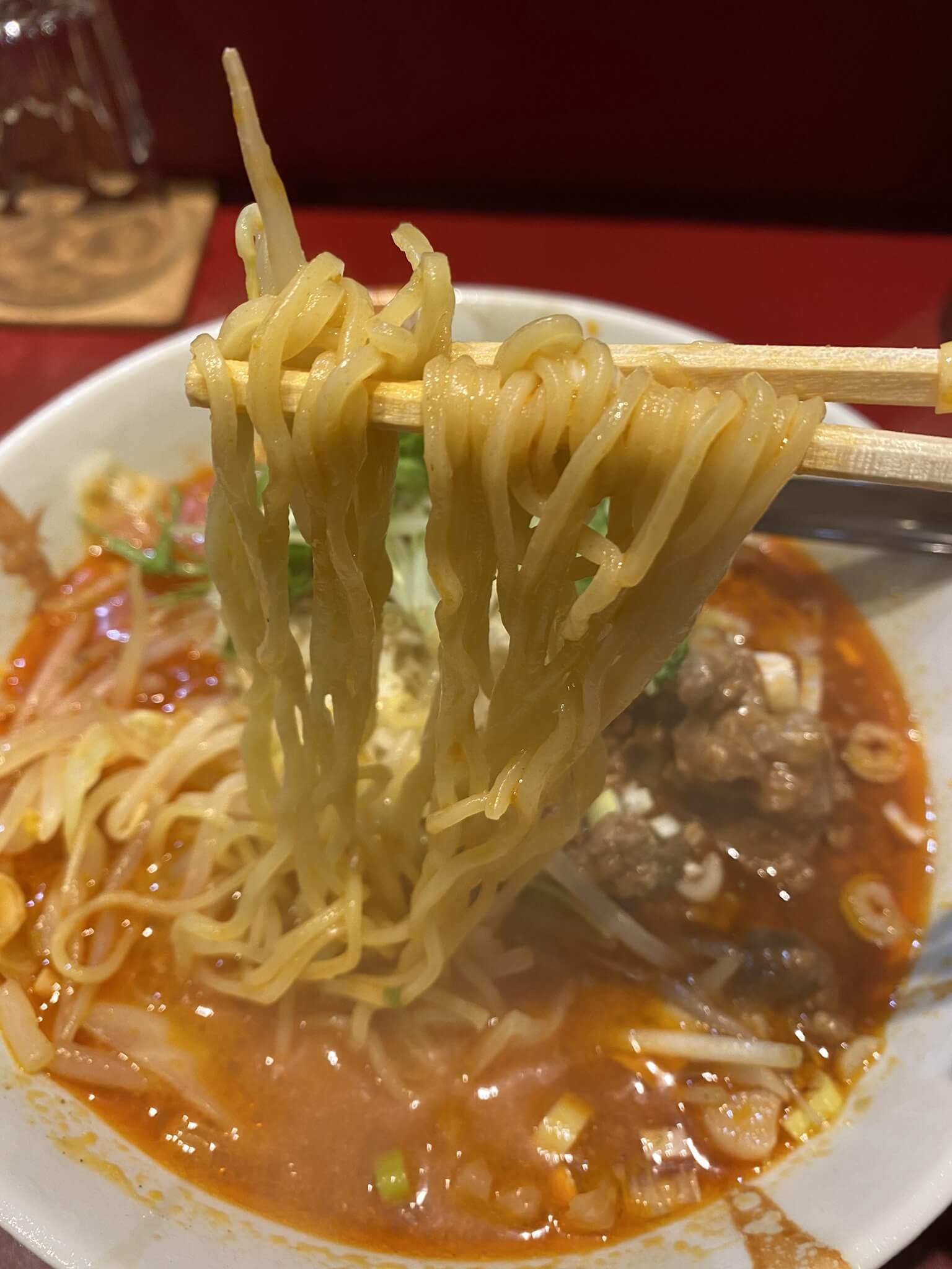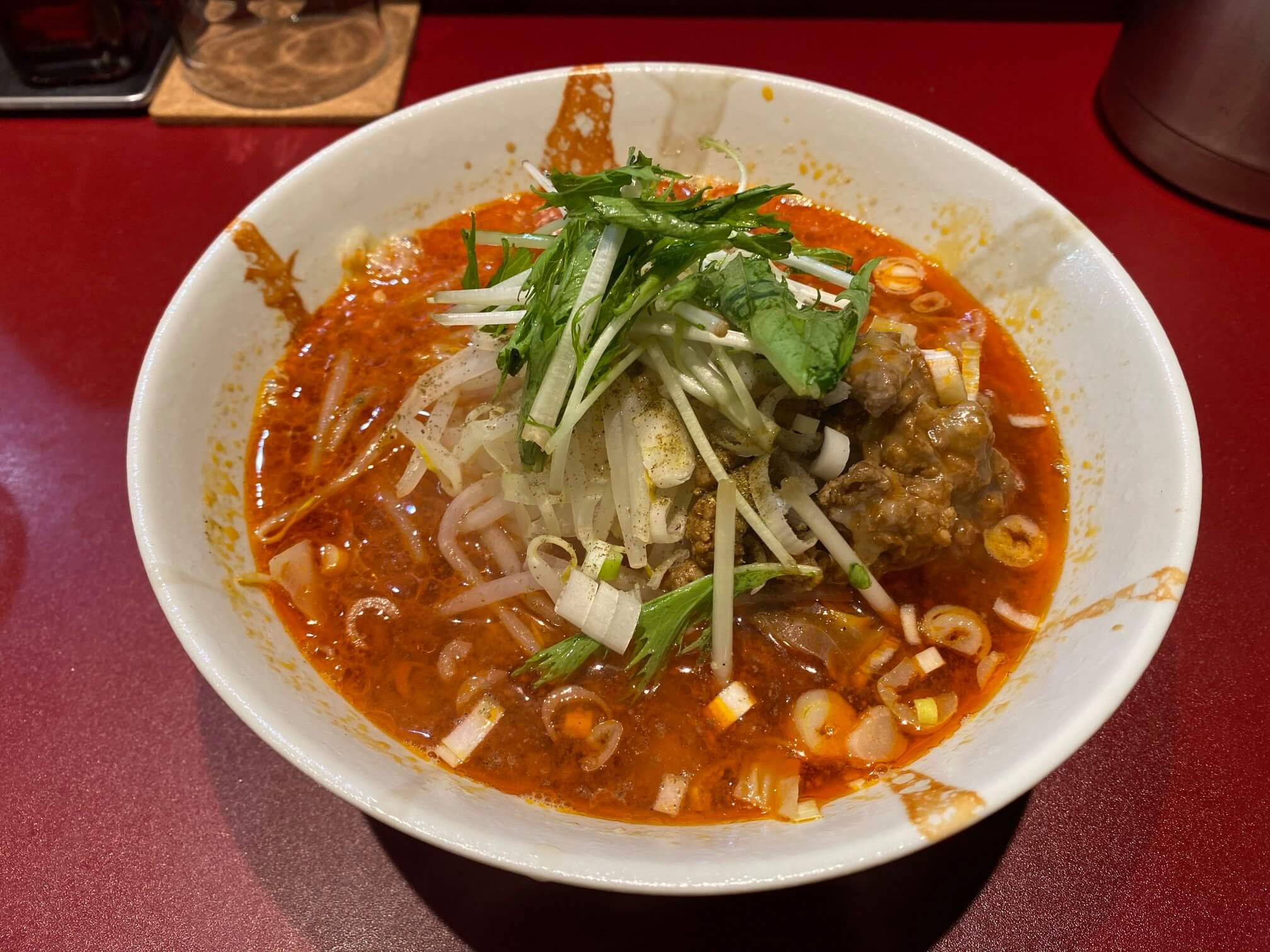 人気No.1の「坦々麺」は野菜がたっぷり入っており、真っ赤なスープの見た目程辛くない、マイルドな辛さになっています
