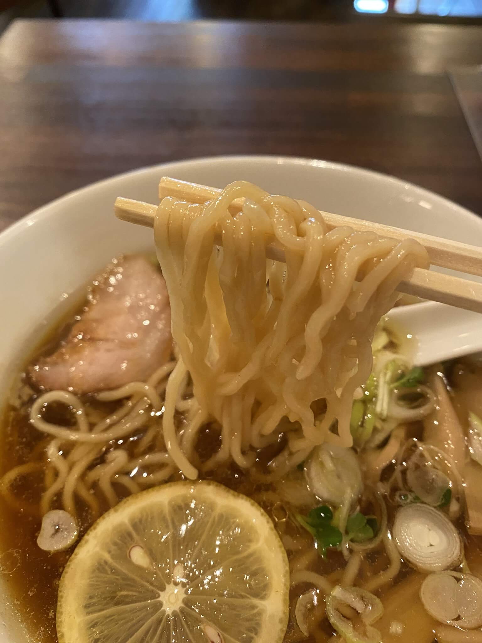 「麺」は2種類のスープどちらにも合う、多加水のオリジナル「中太ちぢれ麺」を、しっかり茹で上げてあり、スープとの相性抜群です