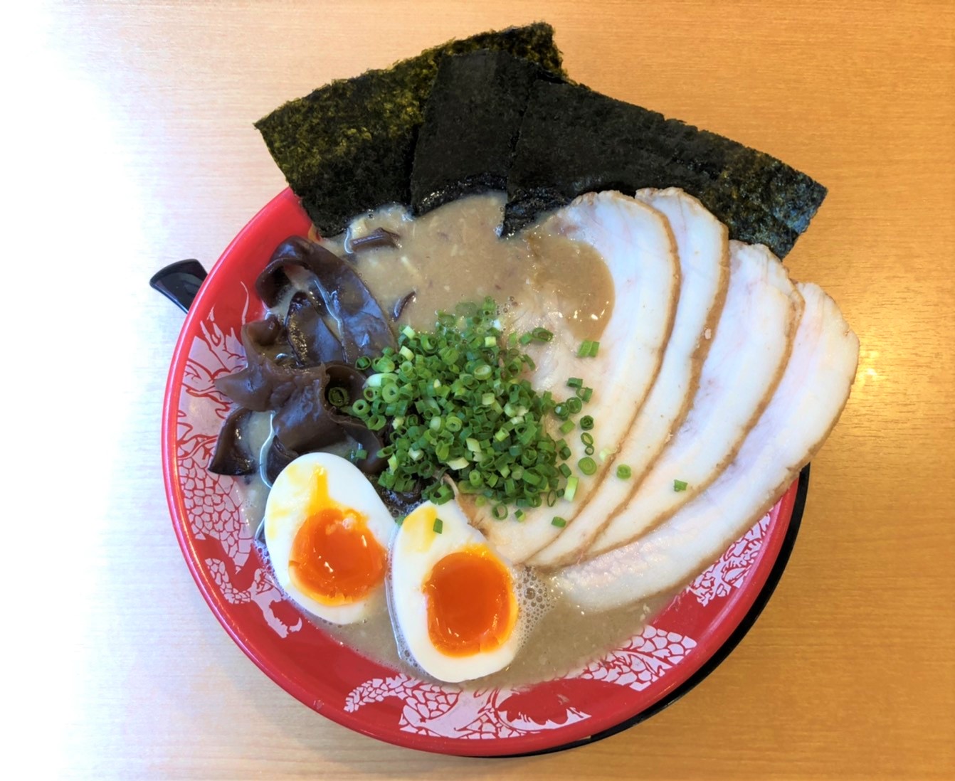 豚骨ラーメン専門店「博多一幸舎」がチャレンジした、【ど☆豚骨ラーメン】は、18番平打ちストレート麺にネットリと絡みつき、お口いっぱいに豚骨の旨味と麺の甘みが溢れます?