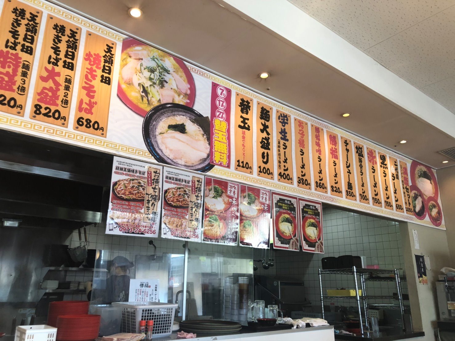 大分県日田市にある『元祖博多らーめん 勝福』さんは、「日田天領焼きそば」のご当地メニューに加え、「豚骨ラーメン」をベースに塩、味噌、二郎系などなど❣