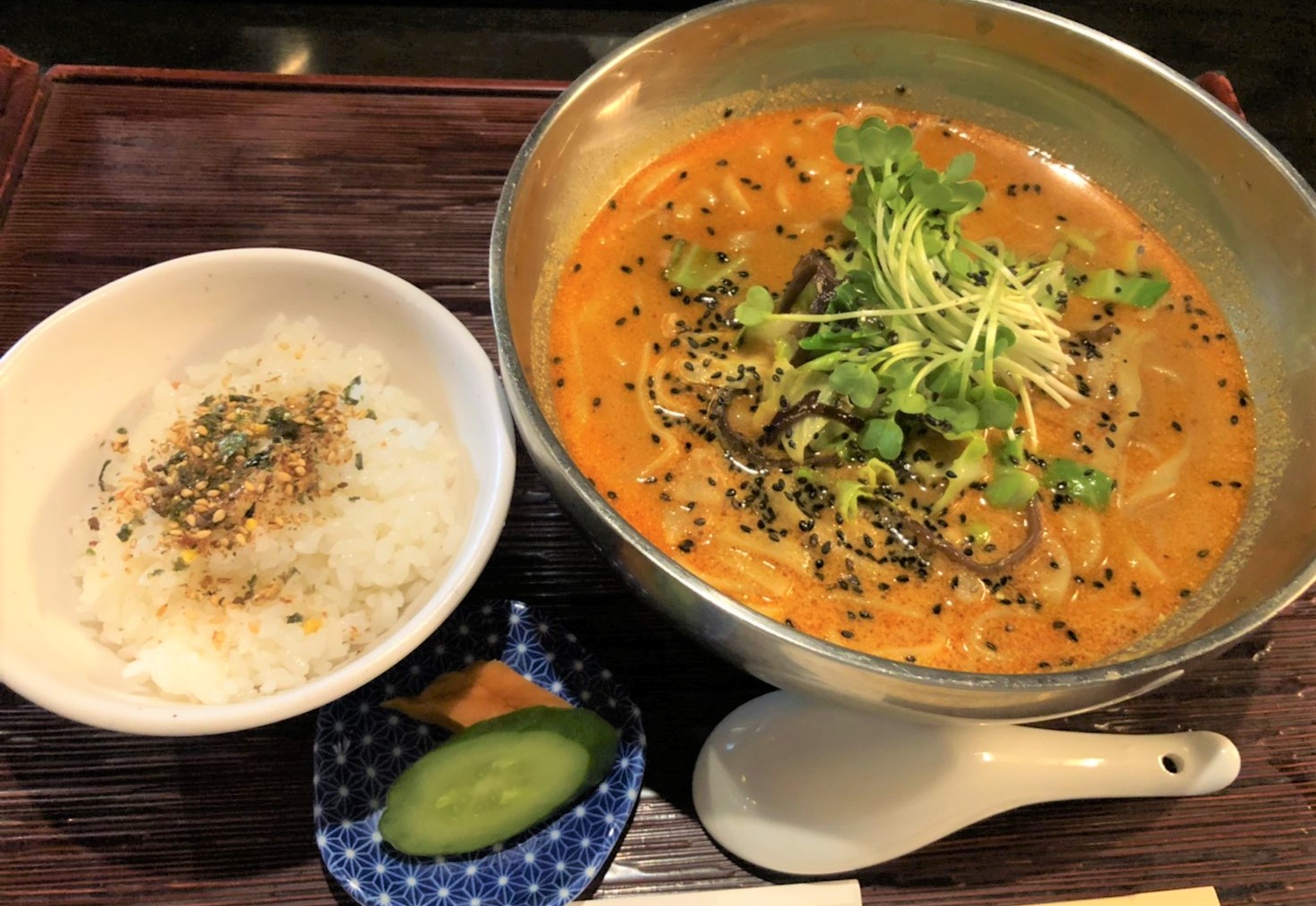 担々麺のセットには白ご飯とお漬物、食後のコーヒーまで付いてこのお値段は超お得ですね?