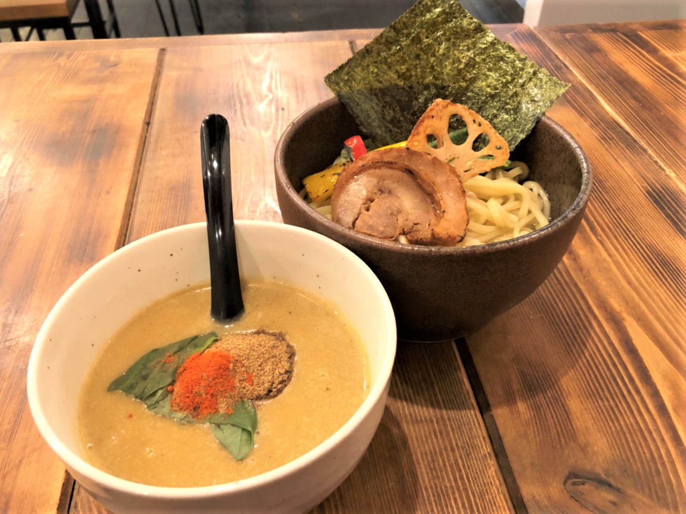 今回は、「グリーンカレー炊き餃子」で使用されているスープをベースに魚粉を加えた「つけ麺」をいただきました(●^o^●)