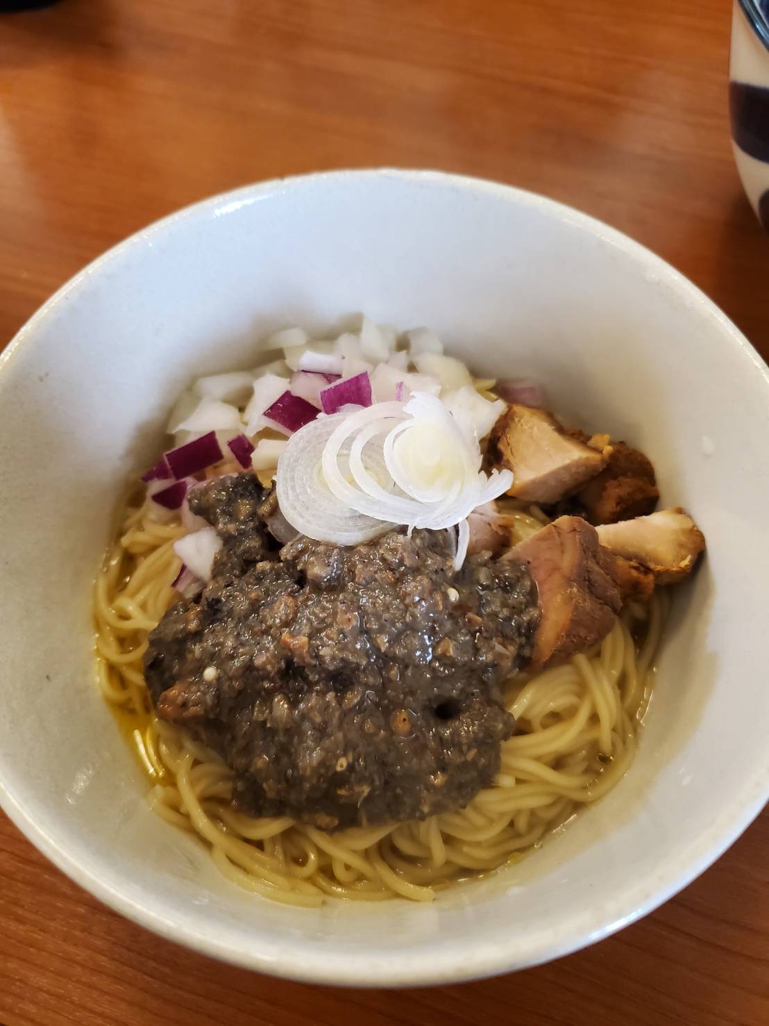 まずは普通に醤油ラーメンをいたいた後に和え玉をいただきます!