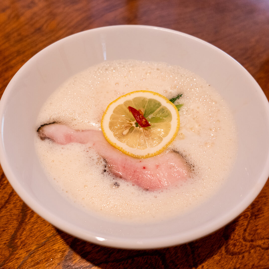 人気メニューの「鶏白湯soba」は、ぷくぷくと泡立ったスープが特徴的で、細平打ちの麺がねっとりと絡みます♪