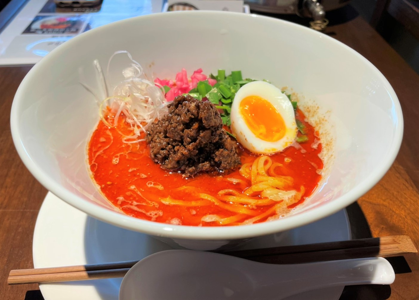 辛いのがお好きな方には『金ごま麻辣担々麺』がオススメで、ピリ辛と濃厚な胡麻の風味が合わさり、モチモチの中太平打ち麺にからみつき相性ばっちり❣