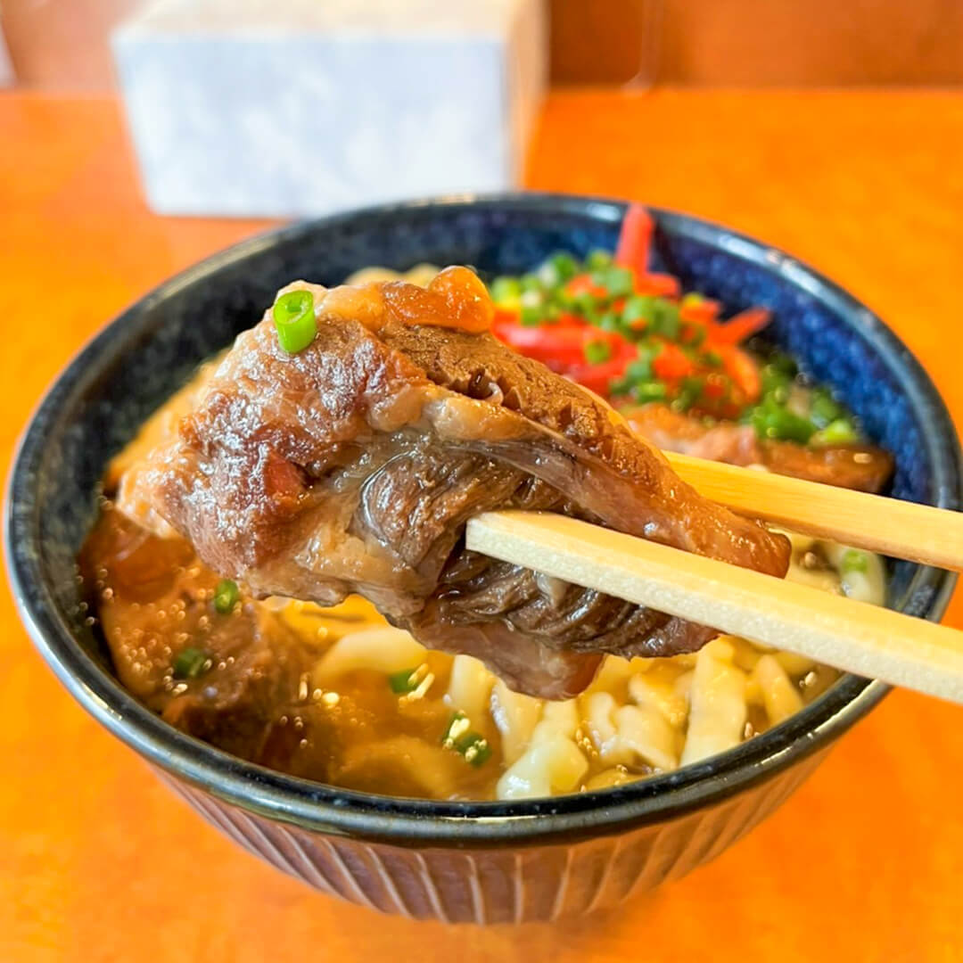 沖縄県のソーキそばもご当地で色々な味がありますが、こちらの「ふじコそば」は、甘めのお出汁しっかりスープに極太の手もみ麺、ホロホロと柔らかい豚の角煮がたっぷりと乗ったとても美味しい1品です![]()