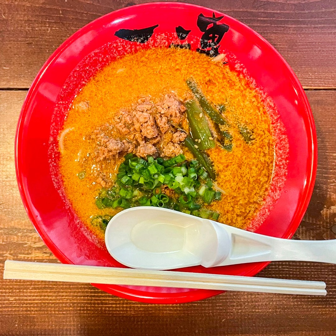 担々麺は以前の平打ち麺では無く、「太麺」か「細麺」から選べます。 「細麺」は豚骨ラーメンの麺と同じ22番の平打ち麺を使用しており、ゆで時間も早く、スープとの絡みもバッチリ★★★