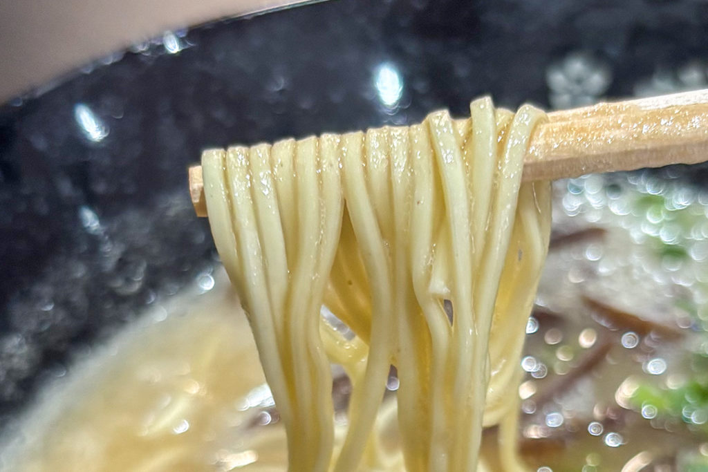 合わせる麺は、歯切れのよい細平打ち麺を使用されており、濃厚なスープとの相性抜群です。