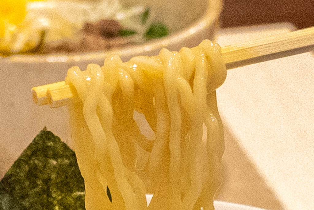 合わせる麺は、18番のウェーブ麺。店主こだわりのスープをしっかりと絡めてくれます。