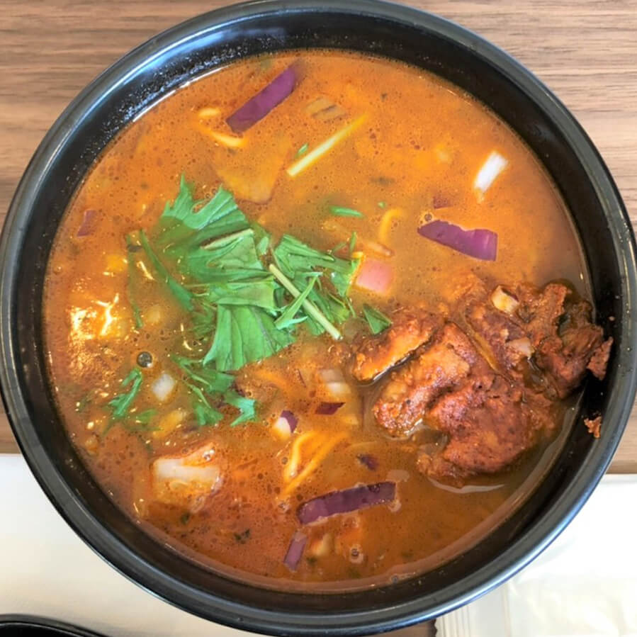 博多デイトス二階『麺街道』にお店がある「博多辛麺 狛虎 Deitos店」さん。 『辛麺』の基本スープ…