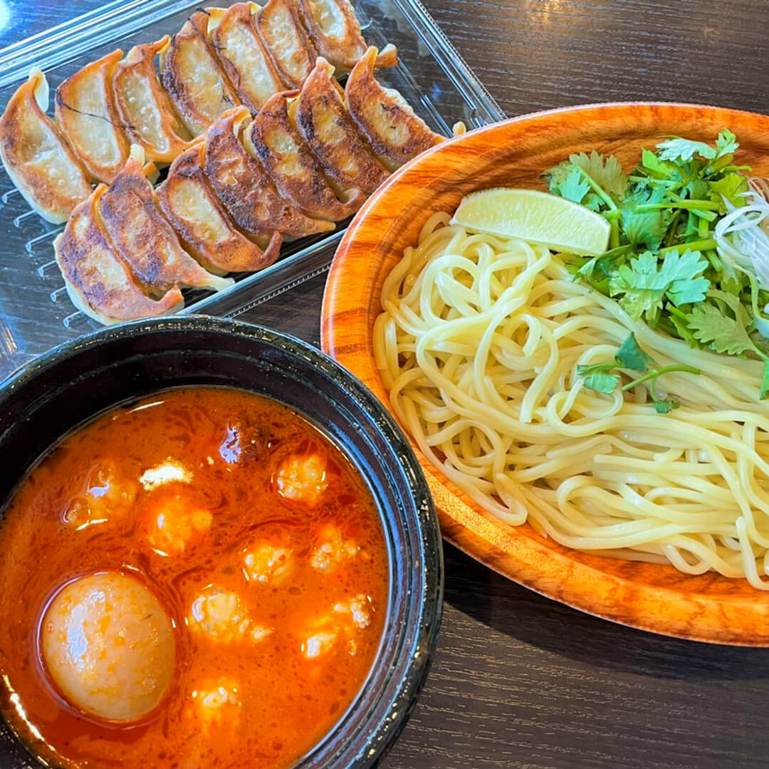 中央区今泉(今泉公園近く)にある『餃子屋弐ノ弐南天神店』さん限定で『麻辣モツつけ麺』を販売されていま…