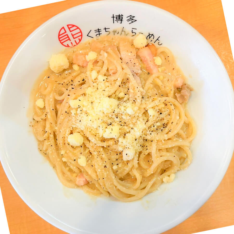 春日市若葉台西にある「博多くまちゃんらぁめん春日店」で、なんと一日限定『3杯』の「豚骨カルボナーラ …