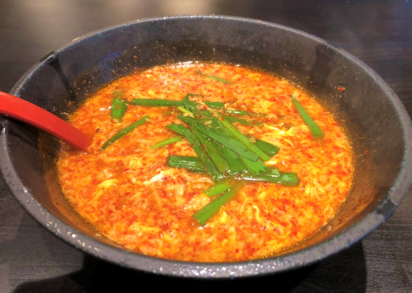 博多デイトス二階『麺街道』にお店がある「博多辛麺 狛虎 Deitos店」さん。 『辛麺』の基本スープ…