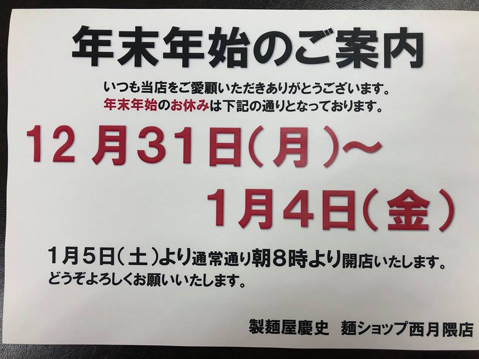 製麺屋慶史 麺ショップ西月隈店から年末年始のお知らせ☆彡
