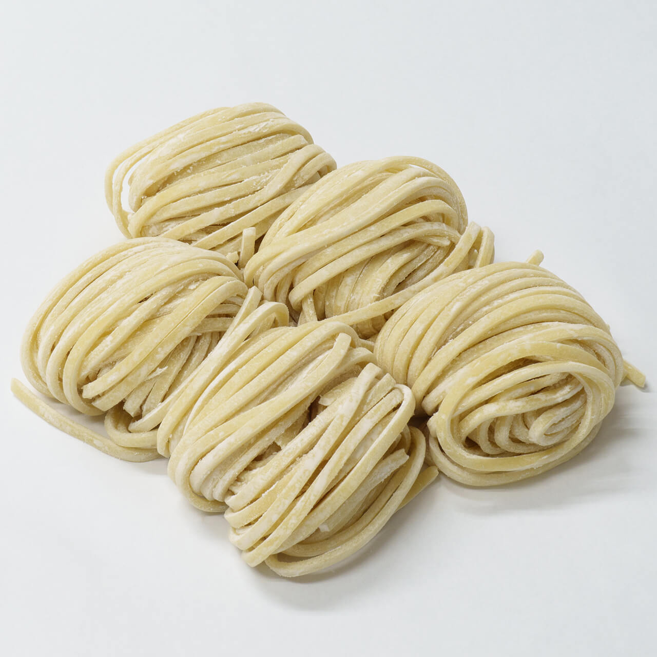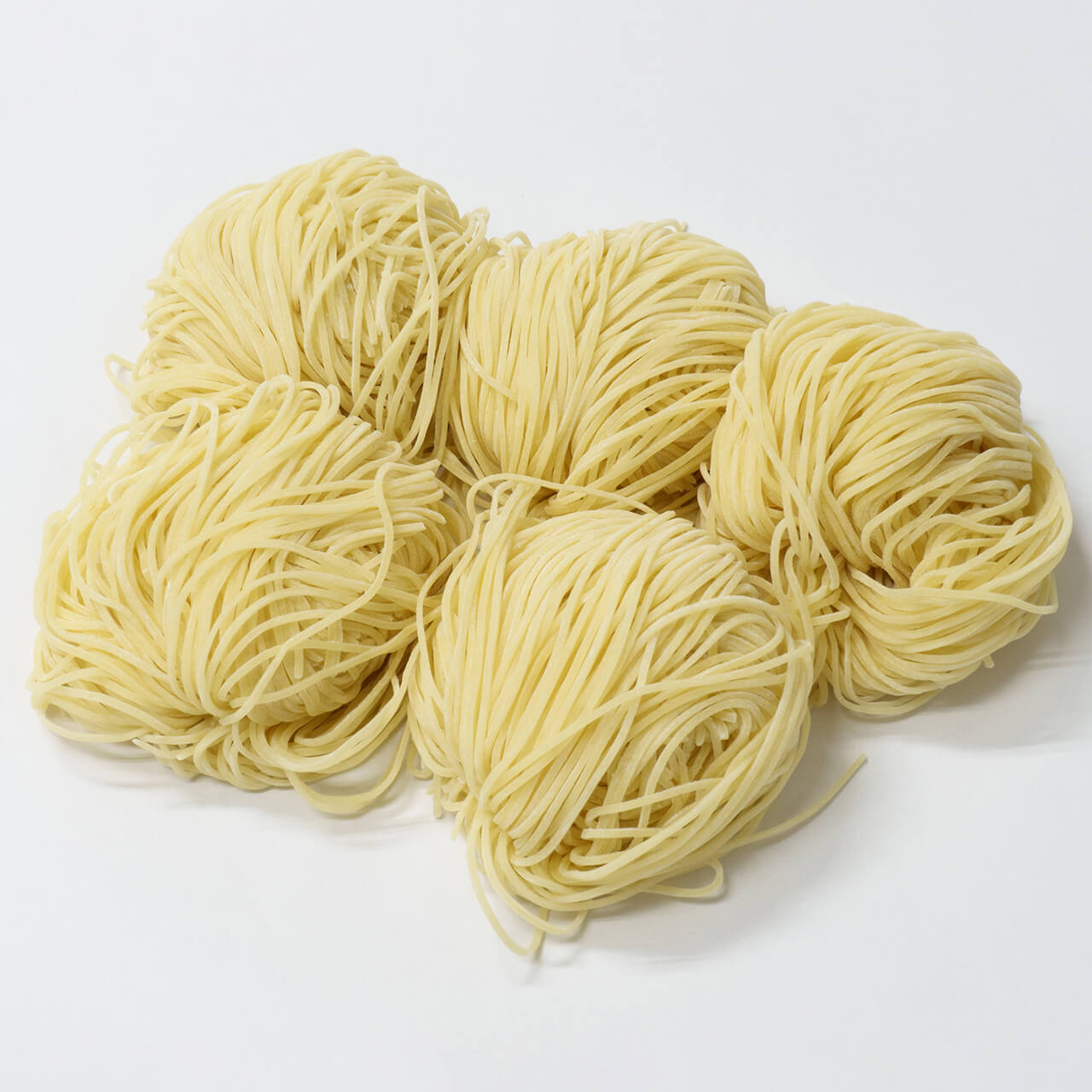 工場直売でも販売している通常の生麺(製造日より1週間)よりも長期間(製造日より90日間)の保管ができますので、個人のお客さまにも購入しやすい生麺になっております。